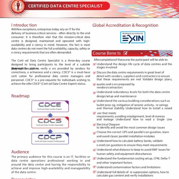 DCFC (Data Centre Foundation Certificate) is designed for those new to the industry, covering fundamental concepts of data centre design, operations, and management. CDCS (Certified Data Centre Specialist) is an advanced certification for experienced professionals, diving deeper into critical infrastructure, efficiency optimisation, and best practices. DCFC is ideal for career starters, while CDCS suits those ready for senior roles.